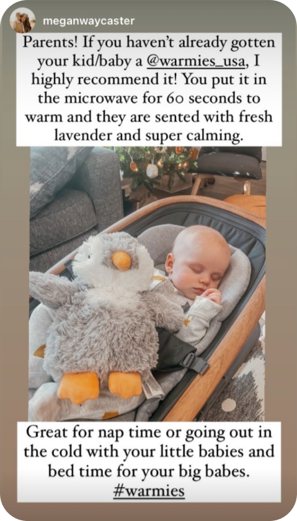 “Gave my grandchildren their own Warmies for Christmas. After seeing them, I turned around and ordered Warmies for myself. I named my purple sloth, Suzy. Suzy warms my lower back as I rest in my recliner. The warmth lasts for quite awhile....Try a Warmie yourself and you'll see what I mean!”